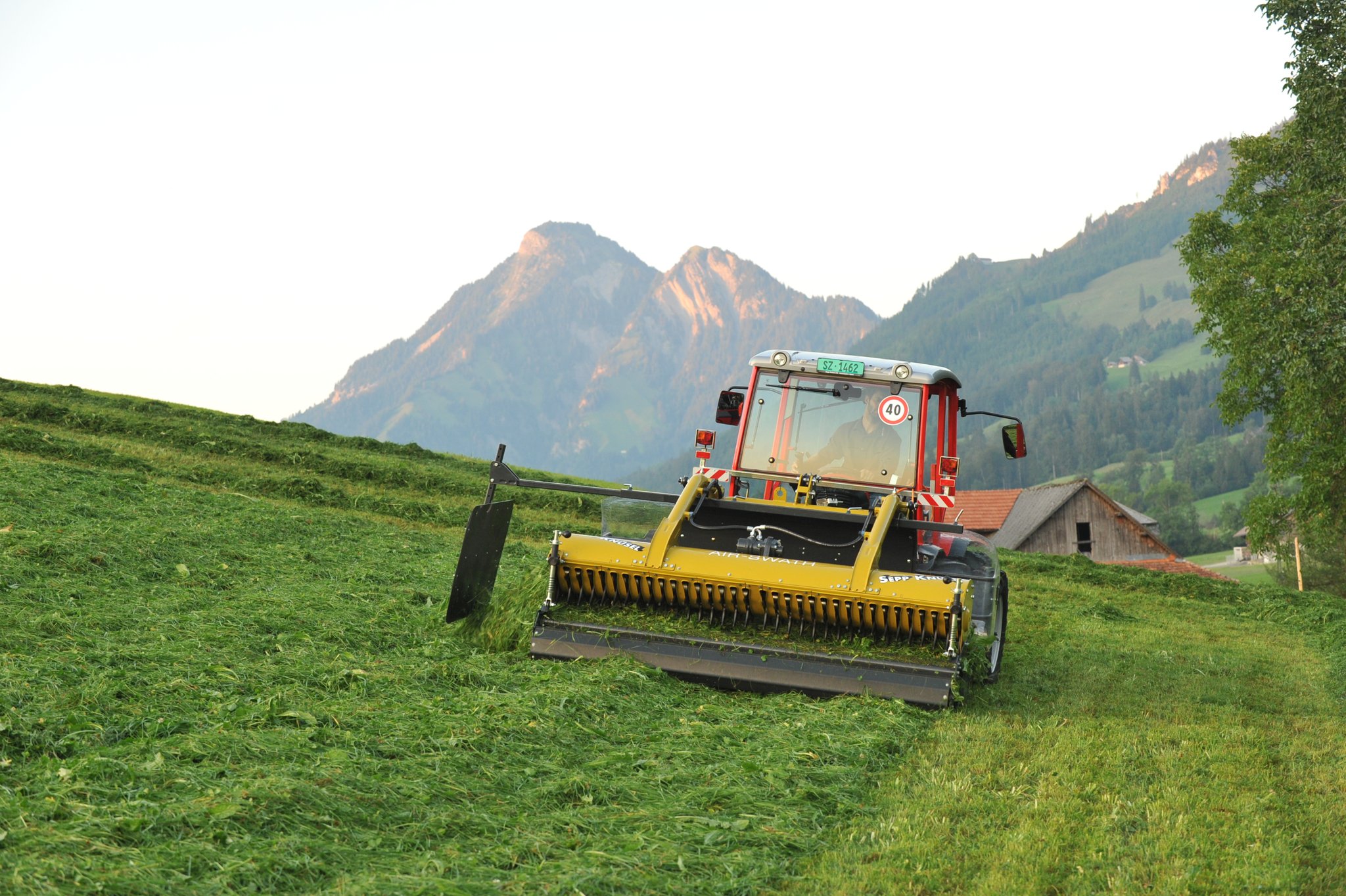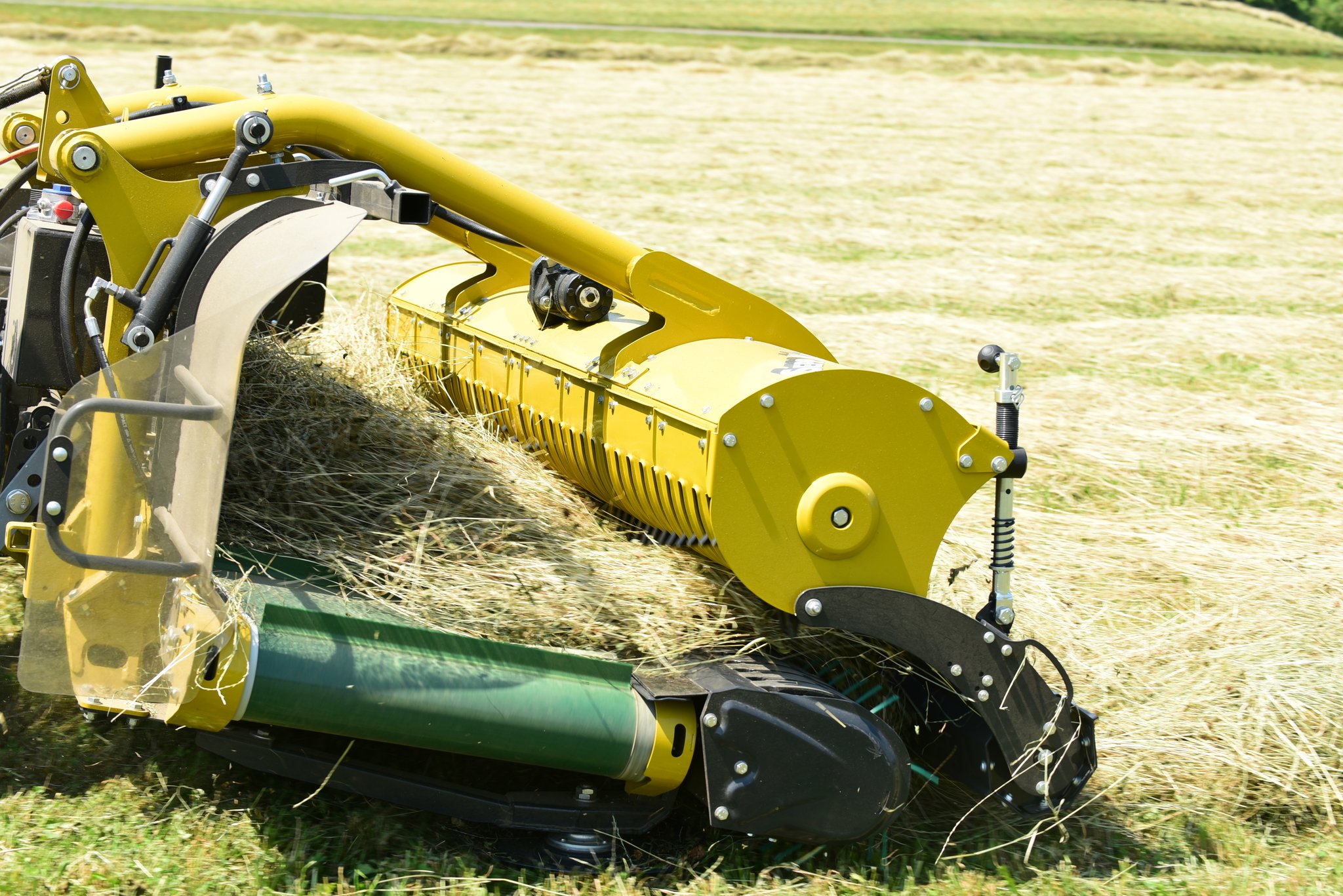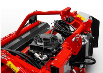 Das einzige Gerät mit Zapfwellenantrieb und integriertem Ölkühlsystem - es entlastet Traktor und ermöglicht den effizienten Einsatz an Mähtraktoren