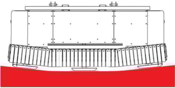 Die frei drehenden Kufen in der Nähe der Aufnahmeeinheit sorgen für eine hohe Reaktionsfähigkeit und hervorragende Anpassung an das Gelände und verringern den Verschleiss der Aufnahmeeinheit. Auf den Kufen bleibt kein Schmutz zurück, da sie sich frei drehen.