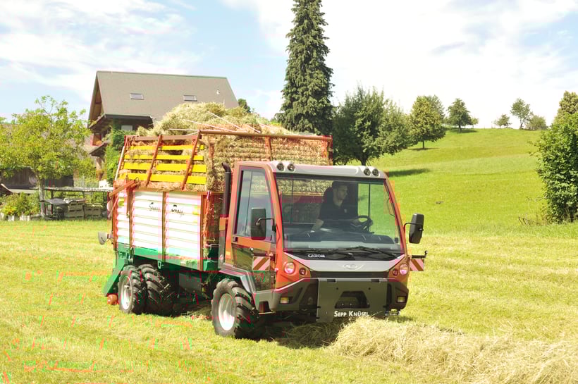 Das Leistungsgewicht verteilt sich beim Transporter gleichmässig auf die Vorder- und Hinterachse, dies bewirkt über alle Räder eine sehr gute Traktion, für eine optimale Bodenschonung.